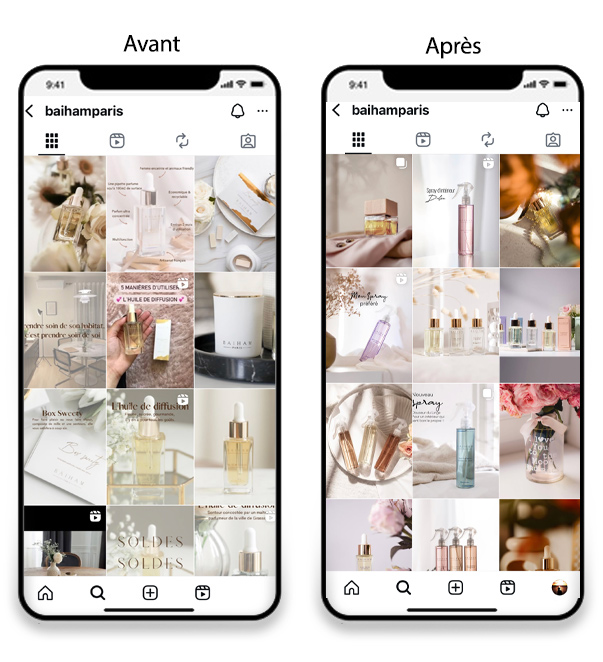 Enfin, l’accompagnement s’est conclu par une série de conseils en communication visuelle, visant à aider la marque à incarner durablement cette nouvelle identité dans toutes ses publications et interactions avec son audience.
